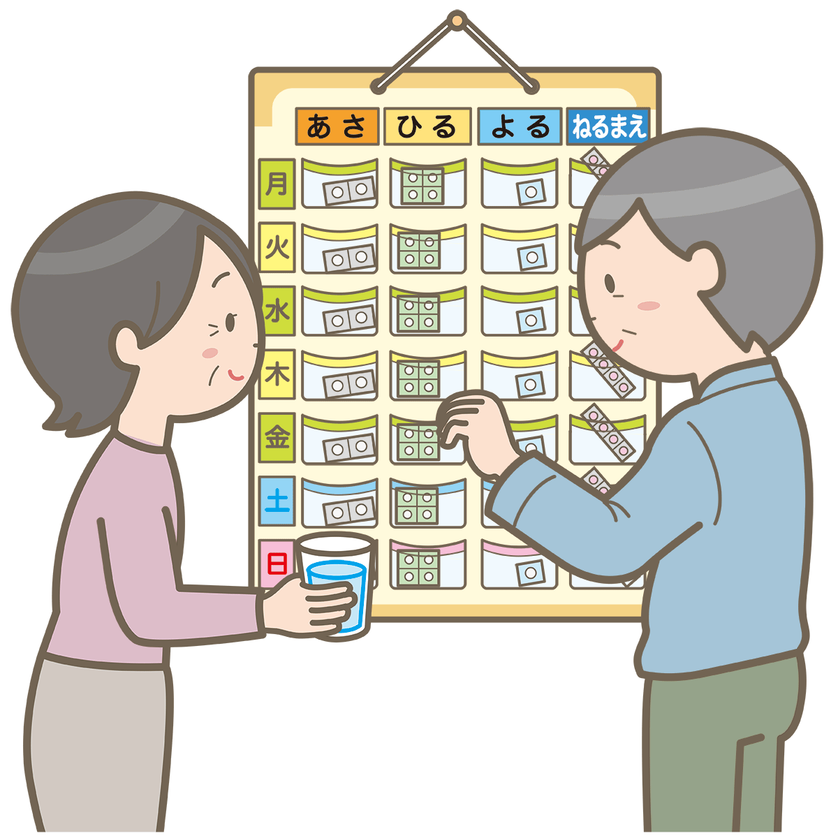 帰宅後は安心して内服できるよう処方薬の仕分けのサポートも行います。